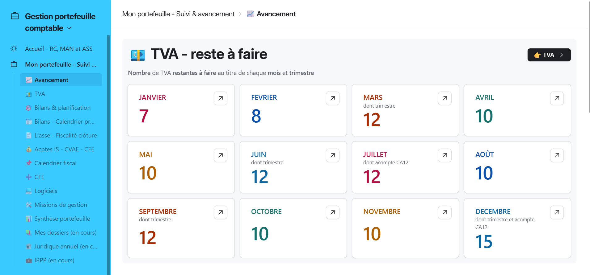 Un seul outil web pour suivre, planifier et analyser votre portefeuille comptable sans Excel.