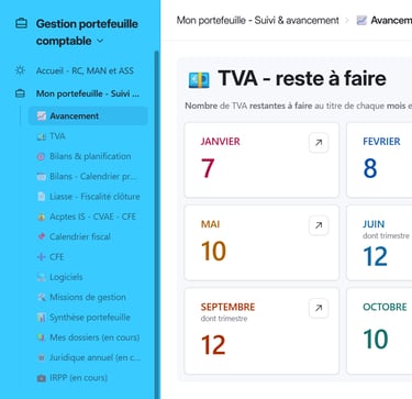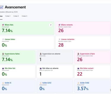 Un seul outil web pour suivre, planifier et analyser votre portefeuille comptable sans Excel.